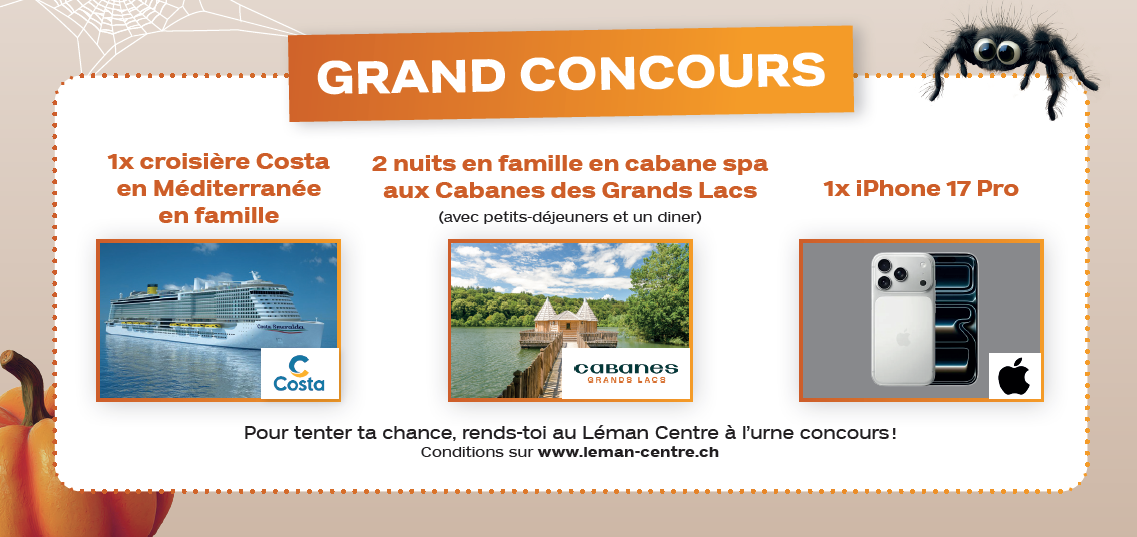 En plus d'une multitudes de surprises à gagner à la roue de a chance les samedis 25 octobre et 8 décembre, tente ta chance au grand concours.