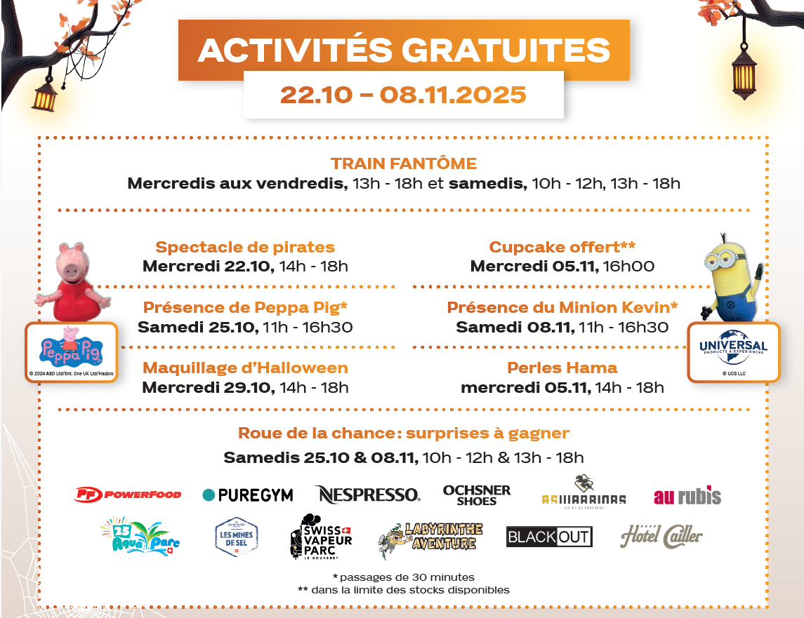 Du 21 octobre au 8 novembre, viens frissonner et t’amuser en famille : train fantôme gratuit pour les enfants, décorations géantes, distribution de bonbons, roue de la chance, ateliers gourmands et créatifs…